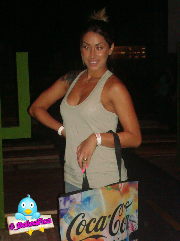 Dani Bolina não se produziu muito nesta sexta-feira (14/1/2011). A panicat chegou com um visual bem desencanado ao Píer Mauá, para conferir o 4º dia de Fashion Rio, onde o seu marido Mateus Verdelho iria desfilar. Ela estava com jeans, camiseta regata, coque alto no cabelo e quase zero de maquiagem.